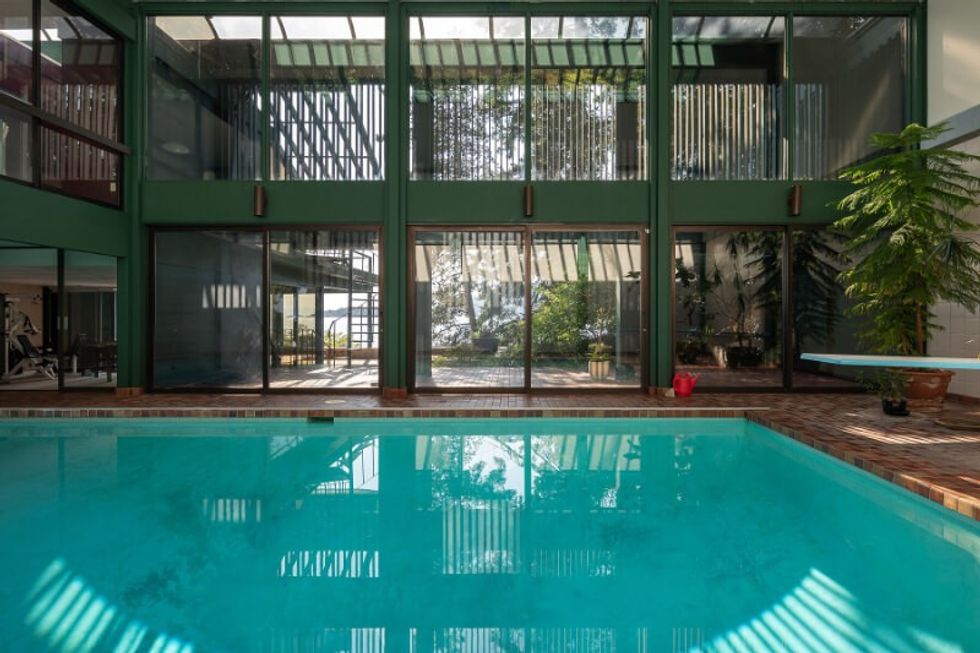 There's a large multi-purpose room on the lower level, which would serve as a perfect gym, complete with direct access to the patio along the rear side of the home. In this space there's also a large indoor swimming pool that sits below more windows and sunroofs.