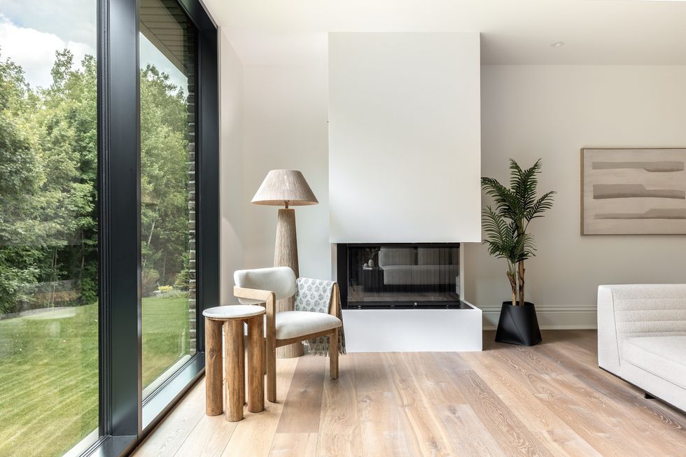 And with floor to ceiling windows, custom millwork, and stone accents, its interior harmonizes effortlessly with the surrounding natural environment (of which rolling fields and lush treescapes are major features).