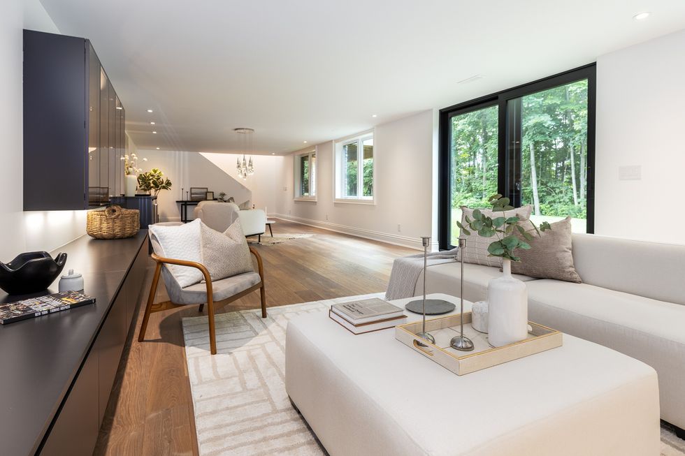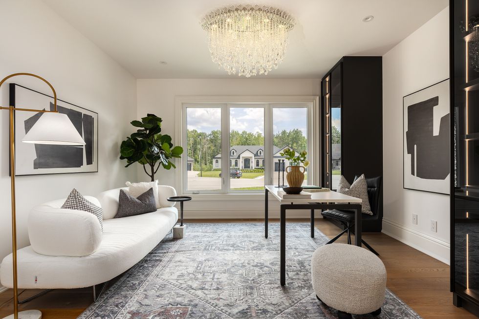 Located in the peaceful town of Springwater, just north of Barrie, this gorgeous home is defined by its contemporary design and clean lines, which are broken up only by eye-catching pops of personality.
