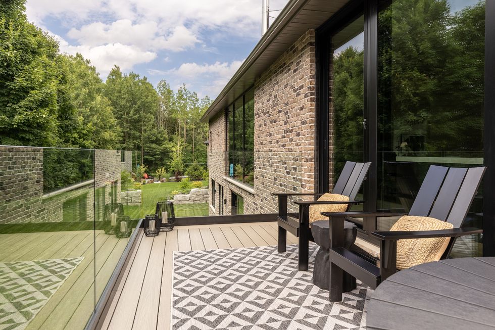 The custom home, which is located on a half-acre lot in a quiet enclave known as Cameron Estate, backs onto a lush conservation area, affording it serene views of the forest. Inside, cathedral ceilings, ample windows, and an open-concept layout give the space a refreshing grandeur you don't find in just any home.