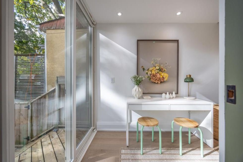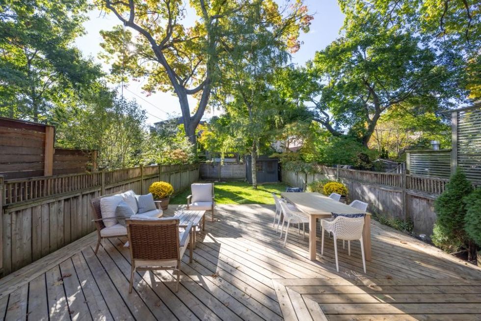 We're swooning over this entire Midtown home, but we'd be remiss not to spotlight the picturesque backyard. South-facing and enclosed for optimal privacy, the generous outdoor respite is complete with a re-sodded garden, a generous deck, and ample grassy lawn space. Whether you're looking to enjoy after-work drinks, some quiet time with a book, or a cheery game of bocce ball, this is the place to escape to.