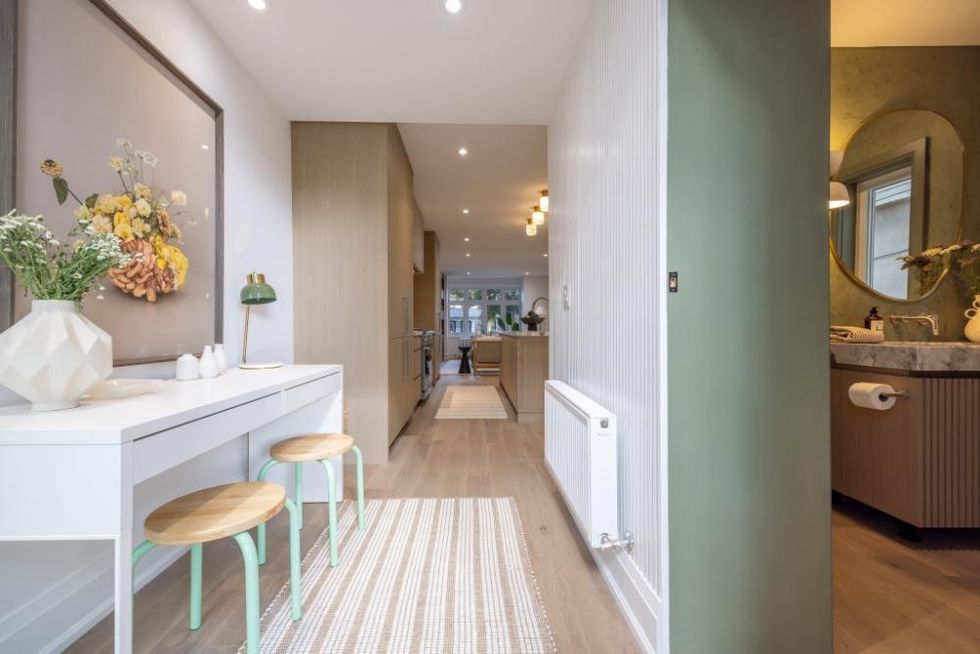 Ascending to the second floor you'll be met by original leaded glass windows, alongside a stunning stained glass feature — the latter being illuminated by a skylight, no less.