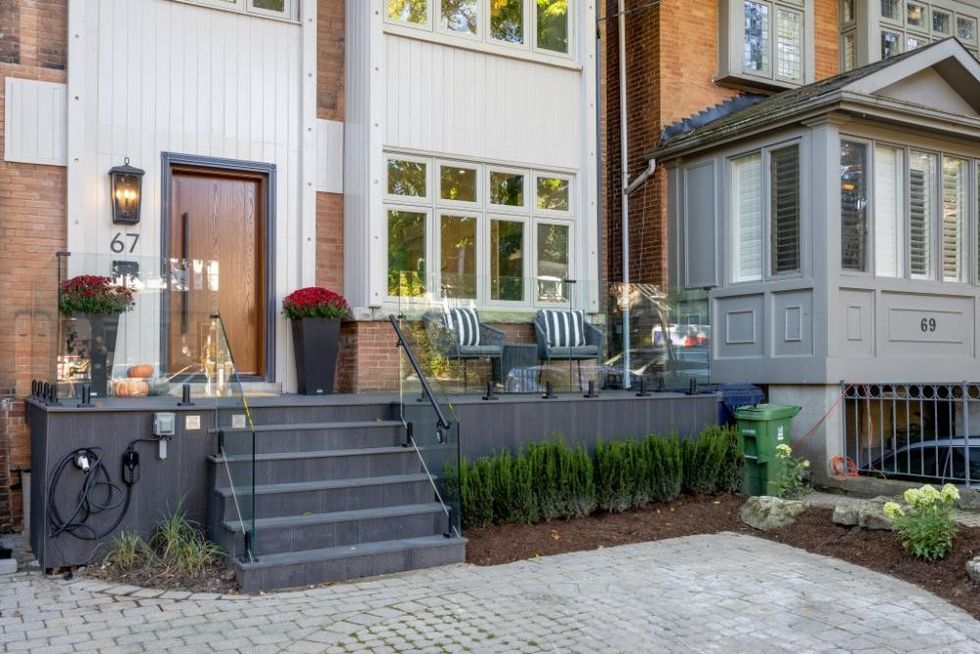 But even with all these lovely surroundings considered, once you've arrived at 67 Walmsley, you'll likely choose to linger. On arrival, an inviting deck (with ample seating space) and a landscaped front garden greet you. You'll also notice an EV charger, conveniently located alongside the front parking pad.