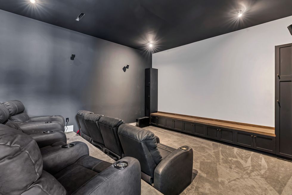 The primary suite offers an elevated take on comfort: dual walk-in closets, private laundry, and a spa-style ensuite complete with steam shower evoke a five-star hotel experience. Four additional bedrooms — including two with ensuite access — provide generous accommodations for family, guests, or live-in support. Finally, a theatre room and a flexible bonus family room make it easy to entertain indoors, rain or shine.