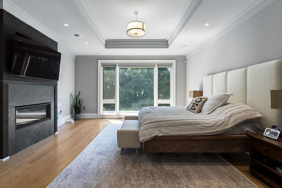 Upstairs, three spacious bedrooms — each with its own ensuite — provide ample space for R&R, while a laundry room adds functionality. The primary suite is a true escape: a gas fireplace for quiet evenings, a discreet built-in office for focused mornings, a spa-worthy ensuite with an oversized shower and soaker tub, and finally, a walk-in closet designed for the most discerning.