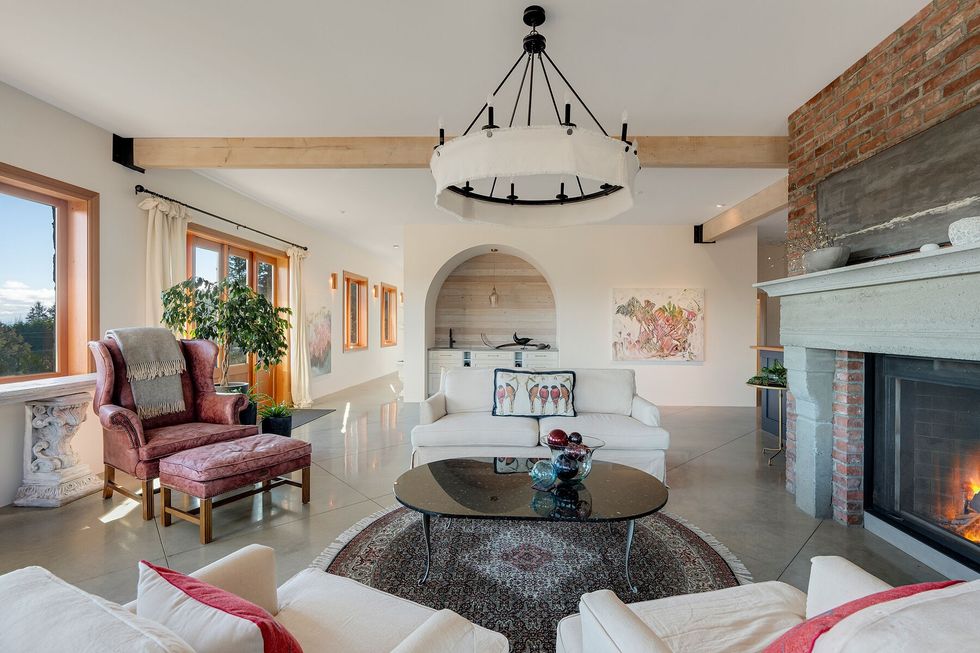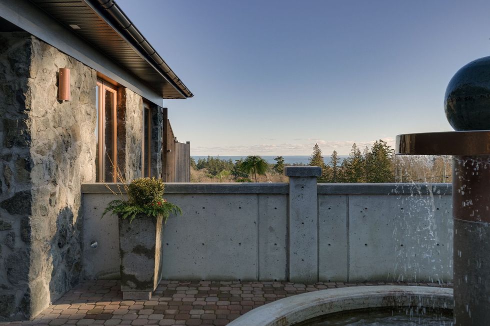 Tucked into the rolling hills of Metchosin, overlooking the vast expanse of Haro Strait and the Olympic Mountains, a newly listed estate awaits that's more than a home — it's a testament to artistry, craftsmanship, and timeless design.