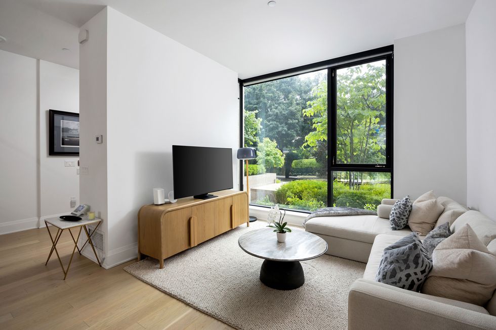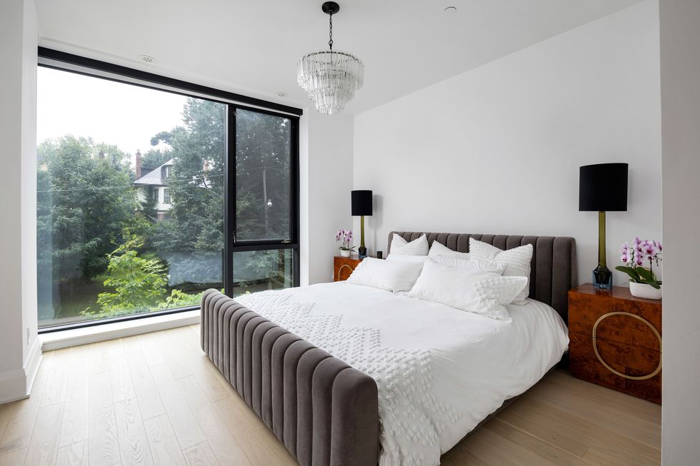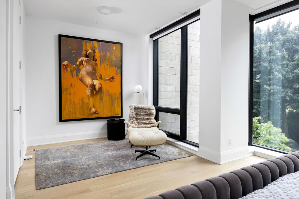 For when it comes time for some R&R, the second-floor primary suite beckons. A true sanctuary, this retreat is complete with a cozy sitting area, plus high ceilings and south-facing, floor-to-ceiling windows, which work together to craft an airy and serene atmosphere. What’s more, not one but two walk-in closets (complete with organizers) mean ample storage space, while the 6-piece ensuite rivals a spa.