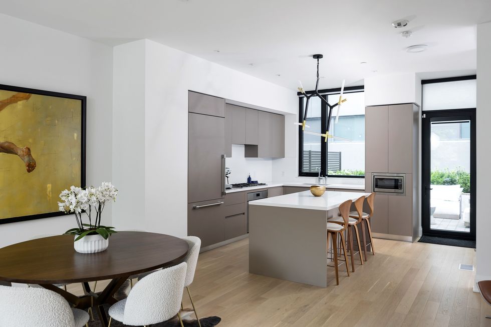A chef-inspired Travisana kitchen stands at the heart of the home, complete with an expansive centre island, marble countertops, a honed backsplash, and built-in top-quality appliances. This is a space as perfectly suited for family weekday breakfasts as for chic Saturday night entertaining.