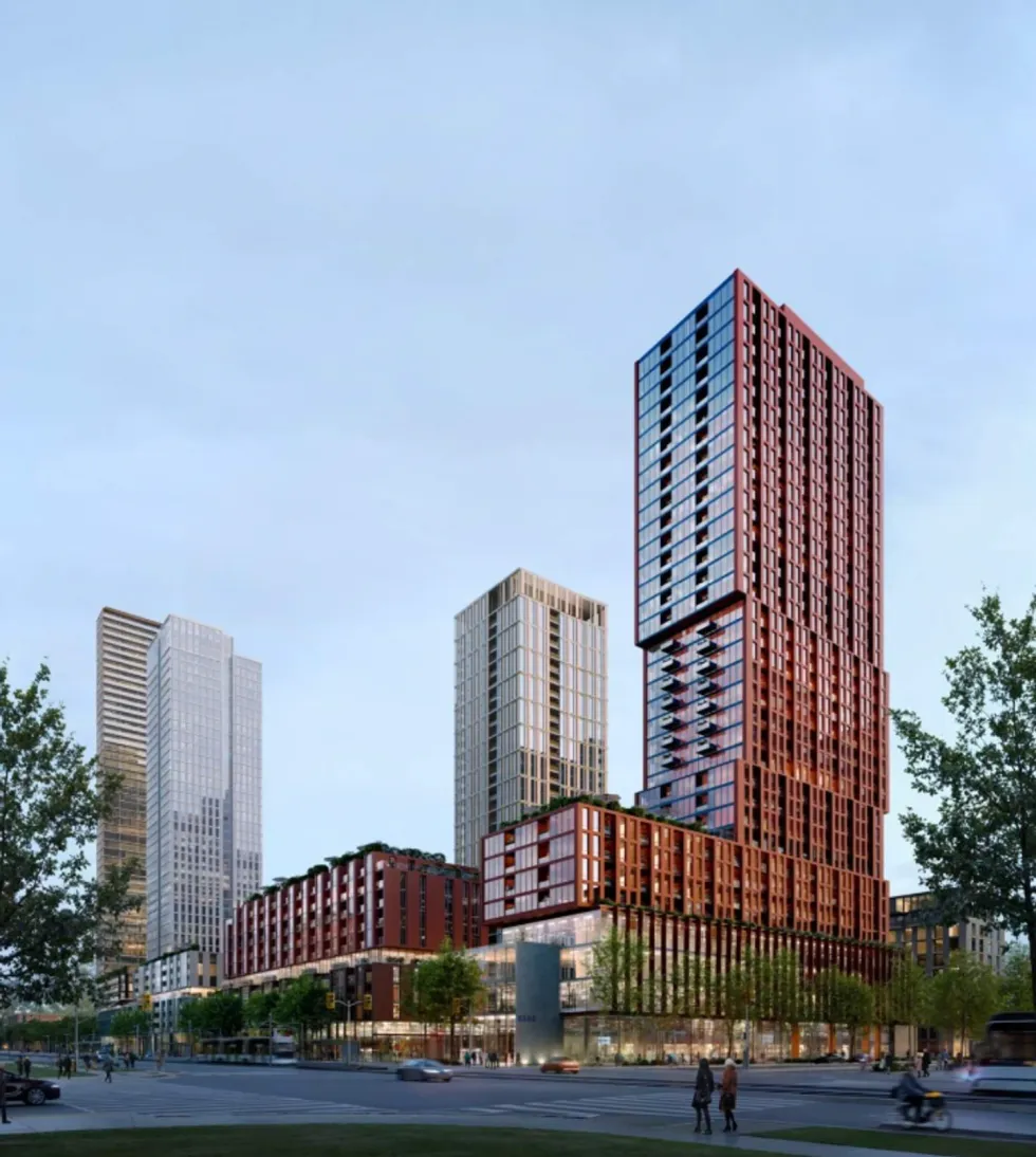 "The project prioritizes creating a sustainable, pedestrian-friendly environment that enhances urban connectivity and livability," a representative from BNKC Architects Inc. told STOREYS. "Inspired by contemporary urbanism and community feedback, the design strategically integrates high-rise and mid-rise buildings to frame vibrant public spaces and activate street edges. Green infrastructure, active transportation networks, and inclusive public realm amenities are central to the design, fostering social interaction and community engagement."