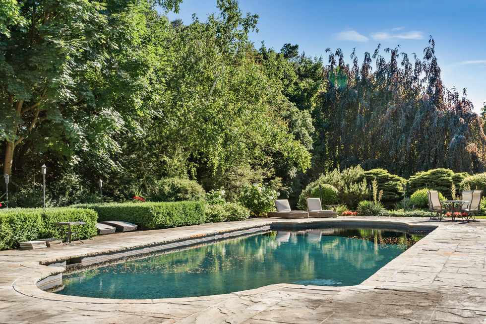 The abode boasts seamless indoor-outdoor living, with thanks to a Gatsby-inspired terrace that extends from one of the several principal rooms. Outside, the opulence continues, with a series of top-tier amenities set against the property's two-acre backdrop. Imagine, stepping out — coffee or wine glass in hand — to your own glassy pool, masterfully appointed pool house (complete with a change room and ensuite), professional sports court, and meticulously landscaped gardens.