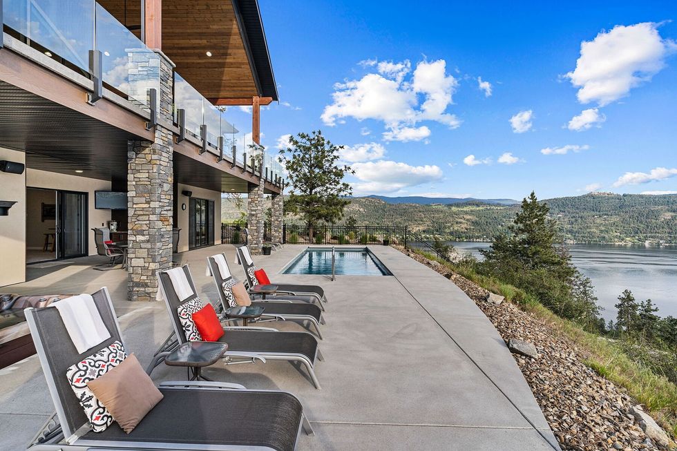 Perched high above Okanagan Lake, a striking gated retreat awaits, delivering a rare blend of privacy, style, and sweeping scenery.