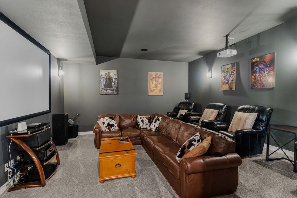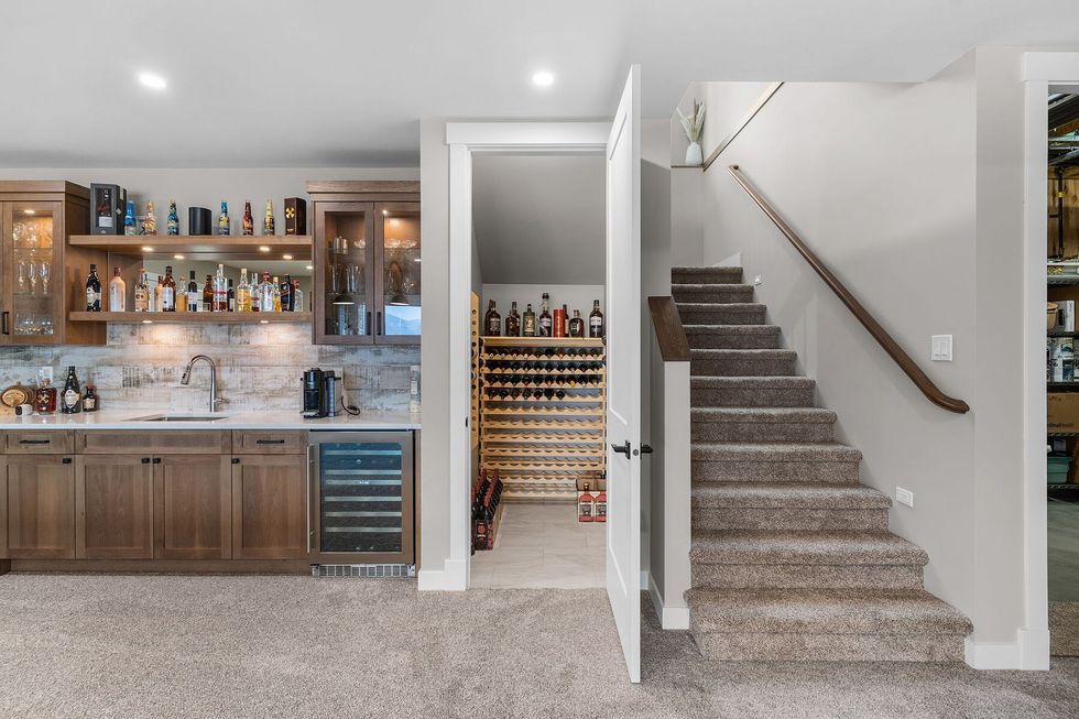 Downstairs, the daylight walkout basement is an entertainer’s playground, complete with a theatre boasting 4K Dolby Atmos, a wet bar, a wine cellar, and a games area — all warmed by in-floor heating.