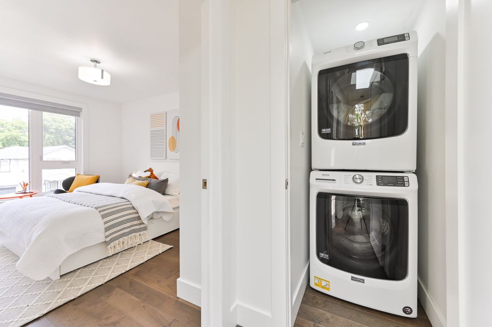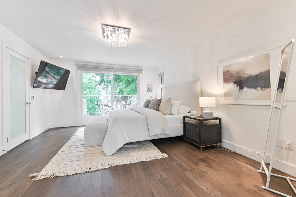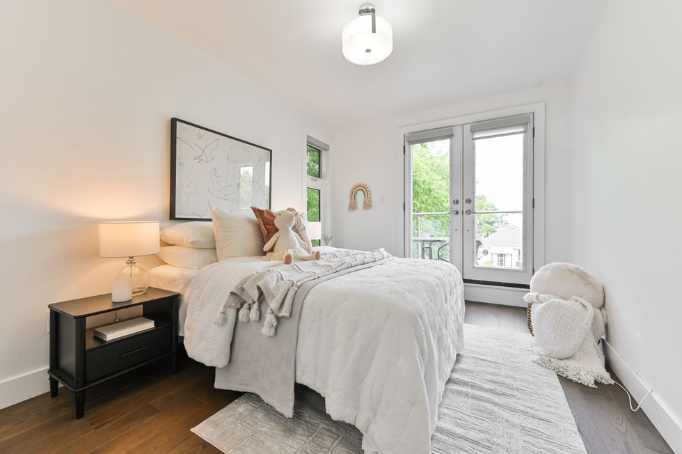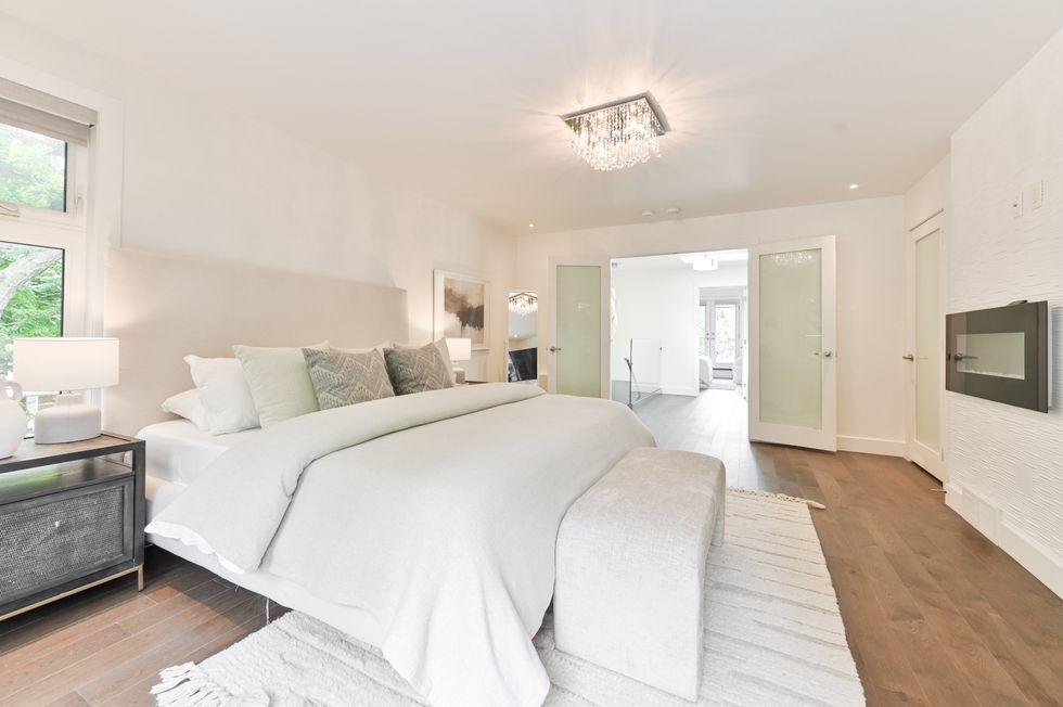The upper levels of the home are equally impressive, with luxurious bedrooms that offer serene retreats from the hustle and bustle of city life. Each room is a sanctuary of comfort, with thoughtful details and ample space.