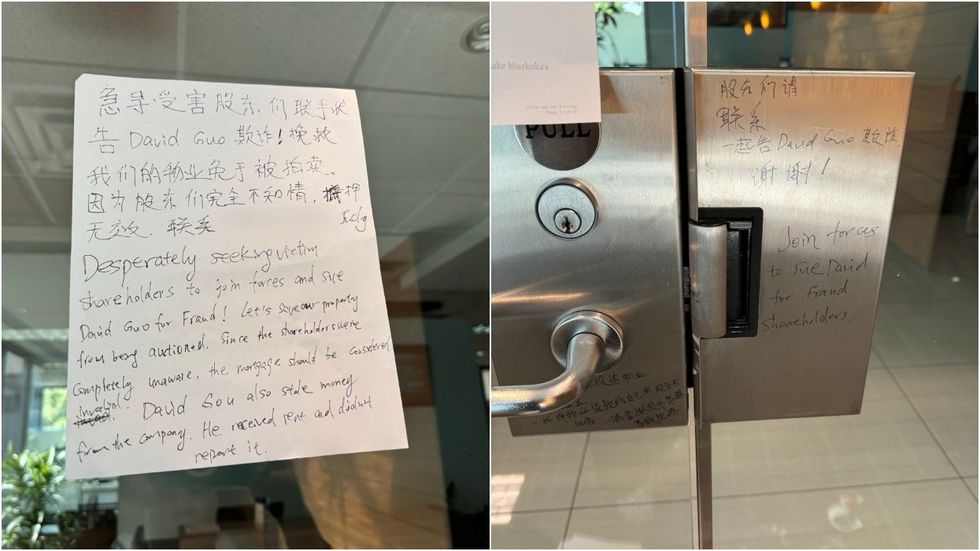 She is now planning to take legal action and visited AimForce Development's office at 311-13091 Vanier Place in early August to leave messages at their door in hopes that other investors would see it and reach out to her.