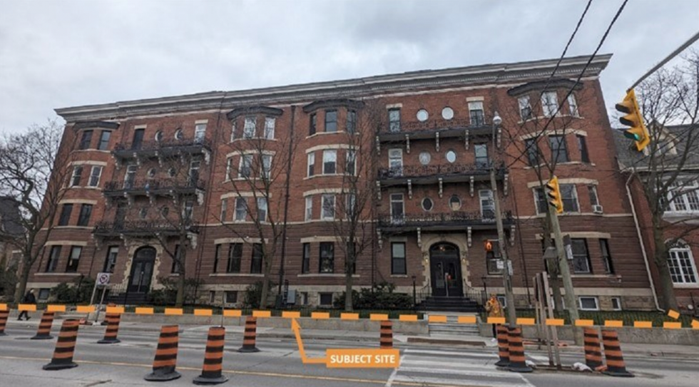 Currently, the site is home to “Spadina Gardens” — the existing apartment complex and 1905 heritage building. According to Prowinko’s plan rationale, the complex is a “fine example of Edwardian Classical Architecture [...] and is one of the earliest examples of apartment buildings in Toronto, [from] a time when significant social change was underway in the city.”