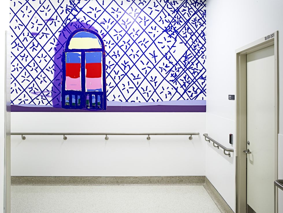 At West Park Healthcare Centre, McIntosh's multi-wall installation Inside Out is inspired by traditional French domestic wallpaper and includes elements from a Matisse drawing. The French wallpaper element is meant to "create a warm and welcoming environment that evokes a sense of home," while the Matisse elements include abstracted landscapes "as a reference to a world beyond hospital walls."