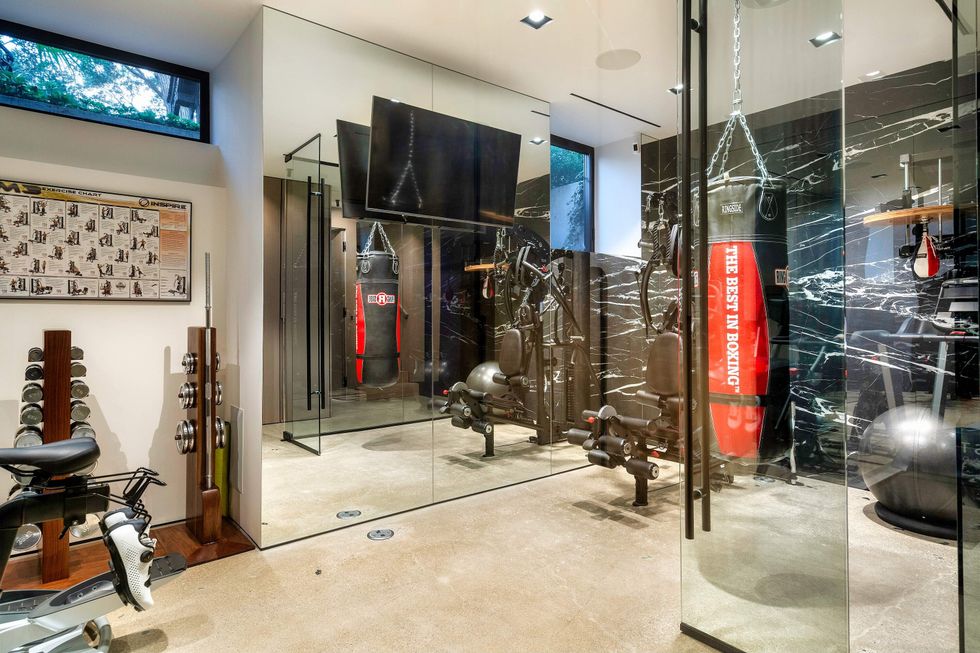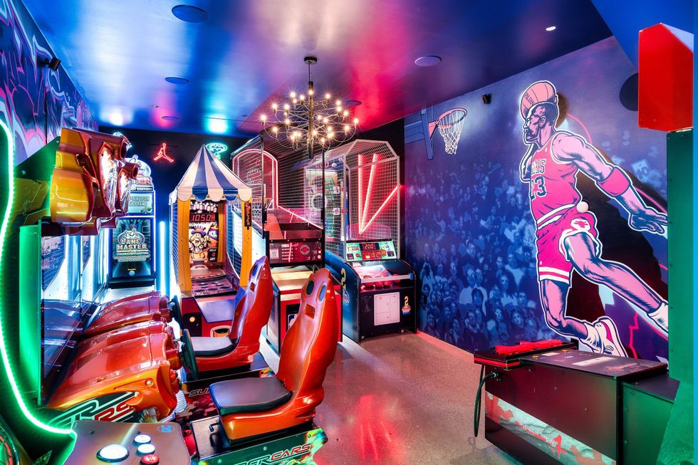 While the mansion's beauty is reason enough to live there, it also packs a punch when it comes to lifestyle amenities. On the lower level, entertain guests (or yourself) with the home's full-size arcade, professional gym, or indoor sauna. And out back, continue the fun and relaxation in the heated pool, hot tub, and an all-season patio.