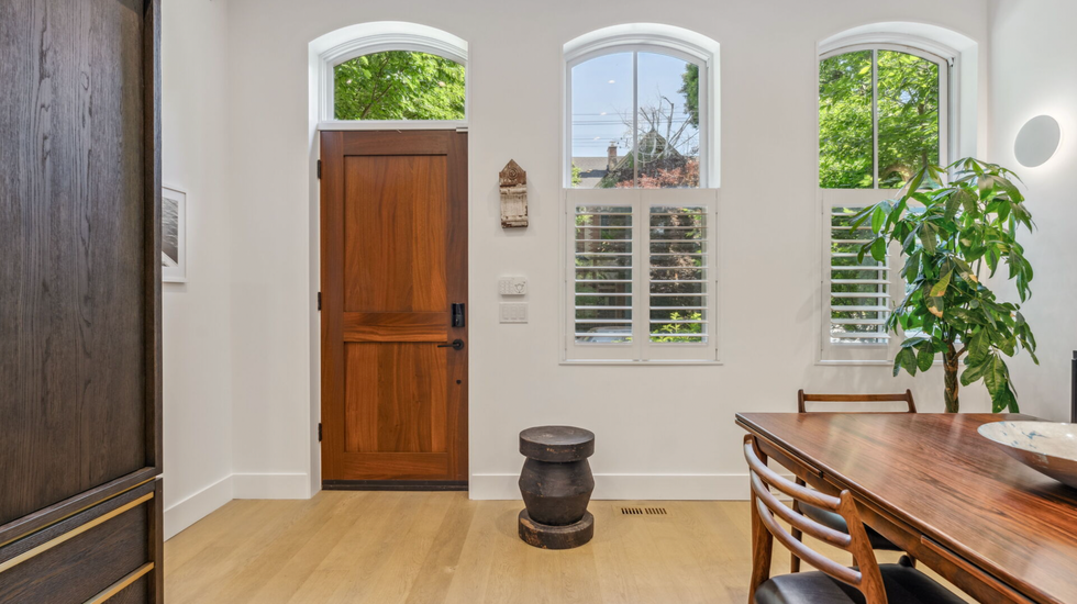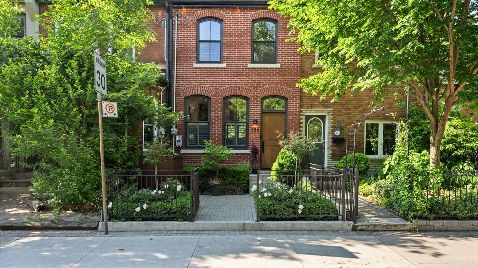 The charming red brick shares the street with other historic homes characteristic of the Cabbagetown Heritage Preservation District and loads of green space in the nearby Rosedale Ravine Lands. It also boasts some eco-friendly (and money-saving) bonuses, including a recently installed solar power system and a built-in EV charging station located in the two back parking spaces.