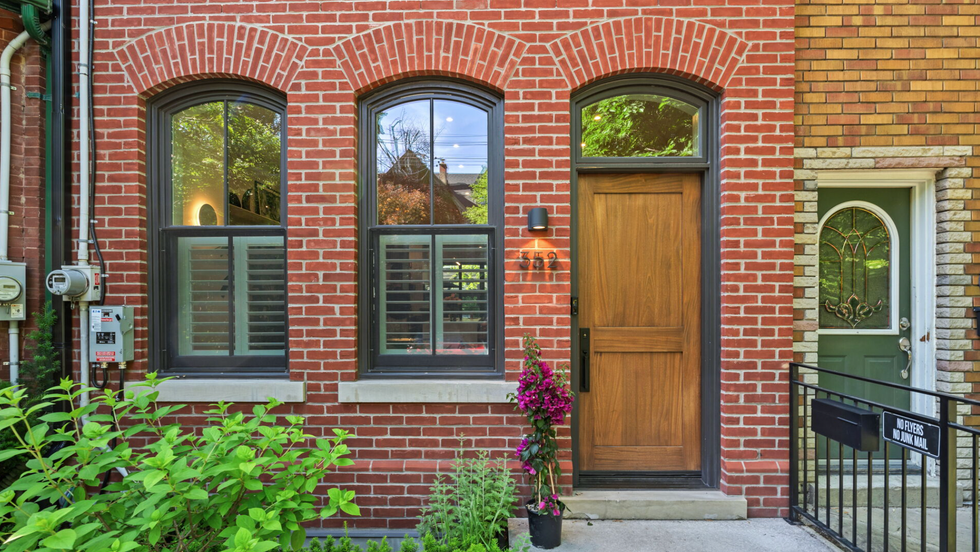 Walk through the fenced garden and arrive at 352 Wellesley’s striking brick facade, defined by two rows of arched windows and a solid wood door.