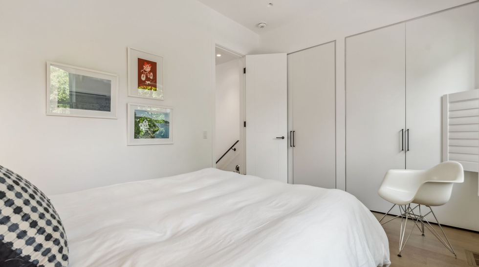 The home is small but packs a big punch when it comes to style and comfort. On top of that, it boasts some eco-friendly (and money-saving) bonuses, including a recently installed solar power system and a built-in EV charging station located in the two back parking spaces.