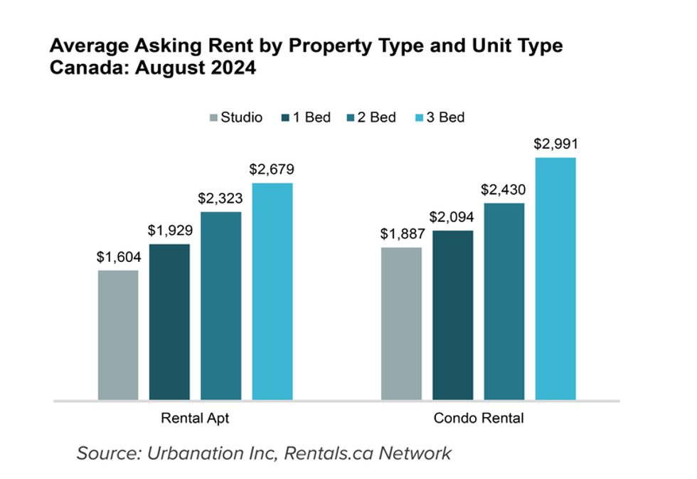 Delving a little deeper into the data reveals that asking rents specifically for purpose-built and condominium rental apartments saw a 4.7% annual rise in August to an average of $2,142. “However, growth was almost entirely attributable to purpose-built apartment rents, which increased 6.2% to an average of $2,118,” the report explains. “Condominium apartment rents increased by just 0.1% over the past year, averaging $2,308 in August.”