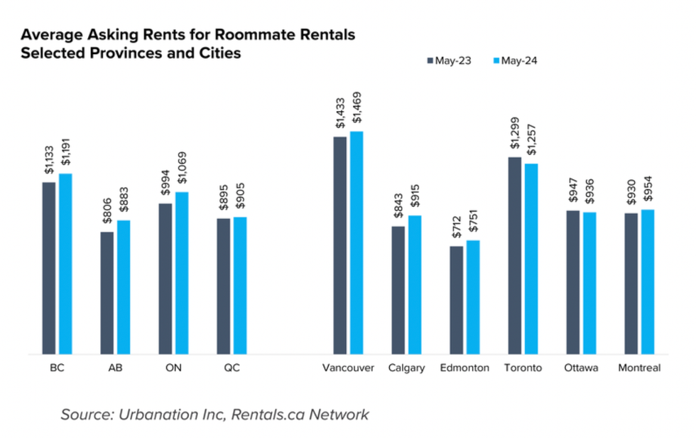 Reflecting the average asking rent in Canada's largest markets, the report shows BC and Ontario had the highest rents for shared accommodations, at $1,191 and $1,069, respectively, and with Alberta seeing the biggest increase over the past year at +9.6% to $883. Though in Toronto, rents for shared accommodations decreased 3.2% to $1,257 from a year ago, and similarly, in Ottawa, they dropped 1.2% to $936.