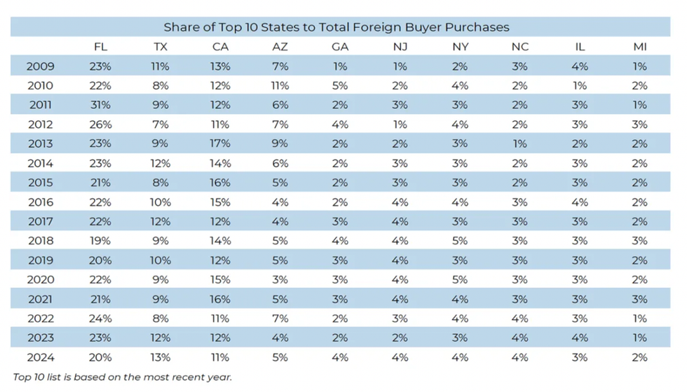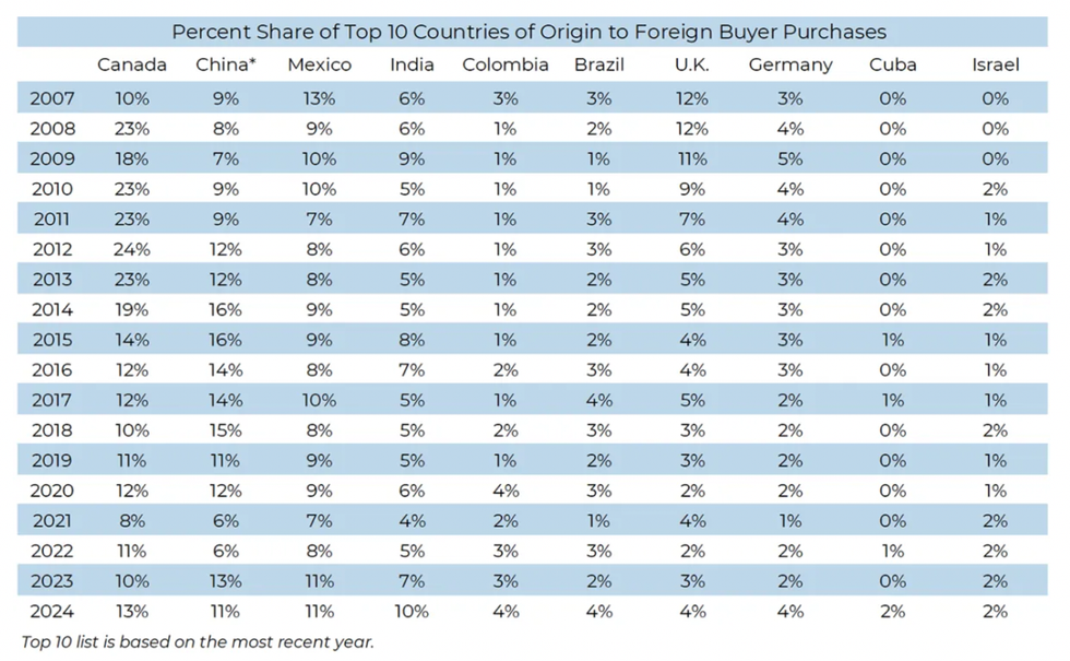 An annual report from the American National Association of Realtors (NAR) found that sales of US real estate to foreign buyers between April 2023 to March 2024 saw the lowest numbers recorded since the report's inception in 2009. But helping keep numbers up, RBC reported, was Canada.