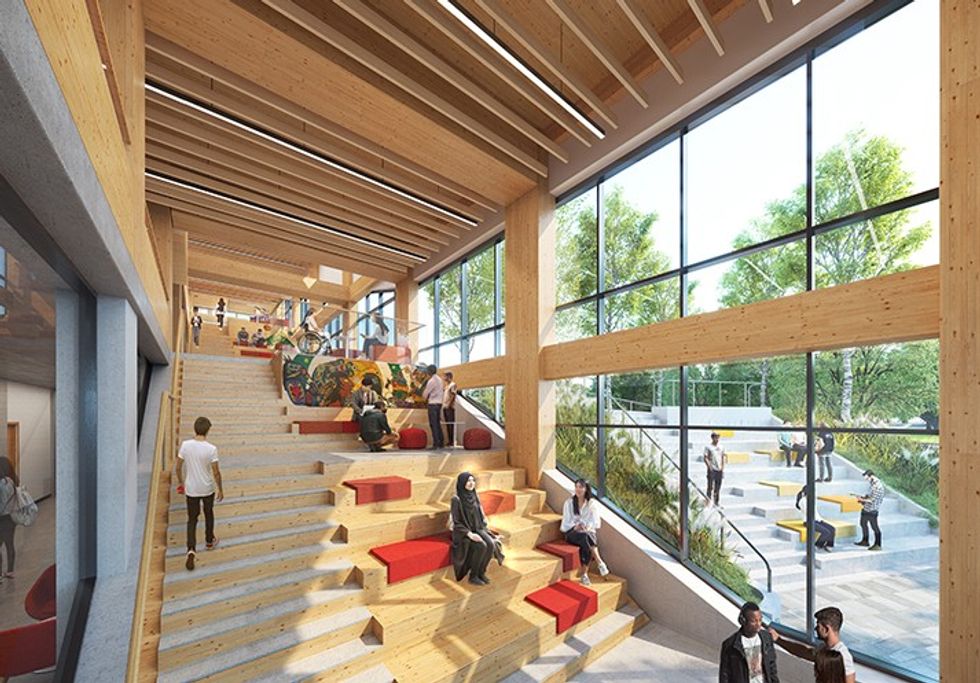 When completed, the 150,000-sq.ft, mass timber structure will not only help meet the projected growth of student enrolment, but it will also house a range of classrooms, labs, and collaboration spaces.