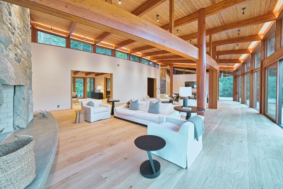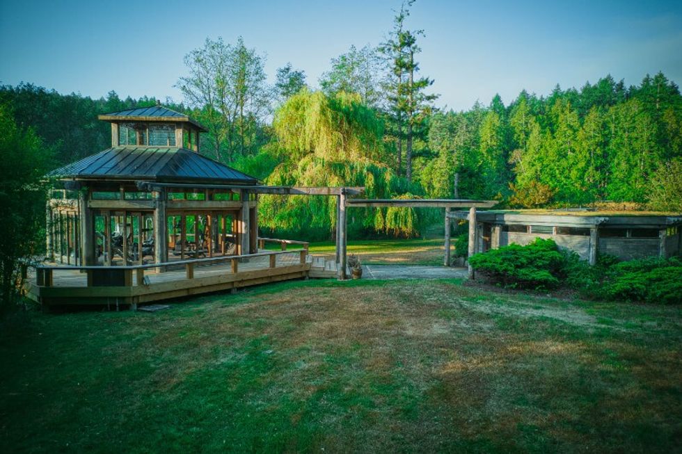 While the home was built recently, the estate itself has been around since 1874, and is home to the Clam Bay Farm that includes a farmhouse, a 5.5-acre vineyard, acres of untouched old-growth forest, a sawmill, a water treatment facility, a farmworker accommodation building, a cabin, and a beach house.
