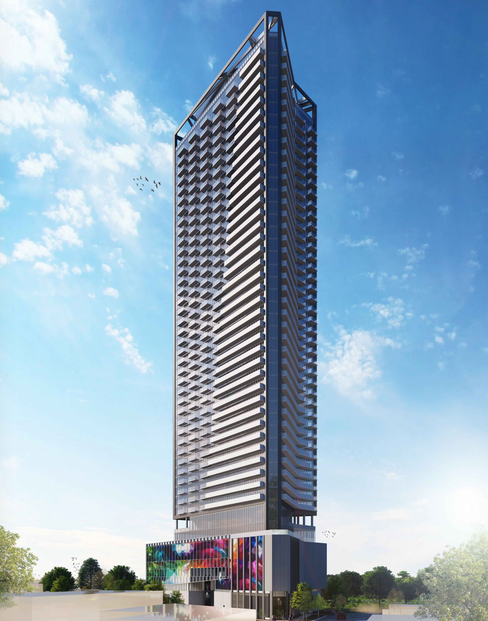 Once complete, the building would be comprised of a four-storey podium and 39-storey tower element, providing 291,701 sq. ft of residential floor space. But in a deviation from the standard rectangular or square form, developers have envisioned an irregular-shaped base that comes to a point at the lobby's entrance. As well, the design features a pedestrian walkway that bisects the base of the building at-grade and is covered from above.
