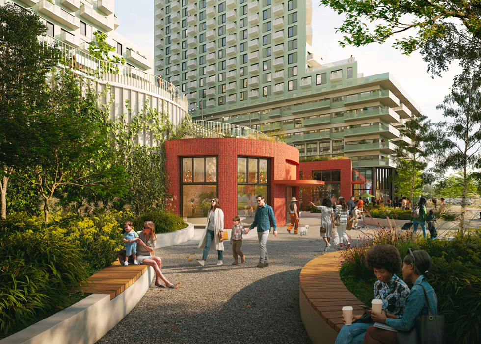 TAS also teased that seniors' housing may be included in the development — although there was no mention of such in the planning documents — and highlighted that the project will have a “wellness focus,” and will emphasize “social connections and the great outdoors… through generous public realm improvements featuring an extensively landscaped raised courtyard, a public conservatory, and expansive rooftop amenities.”