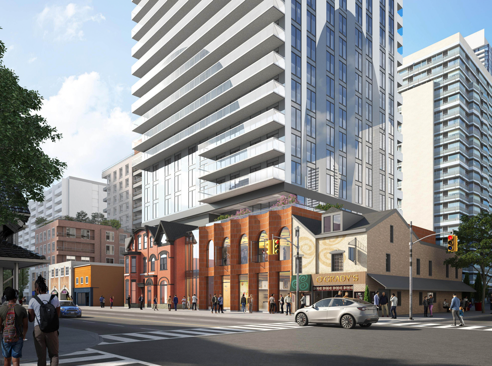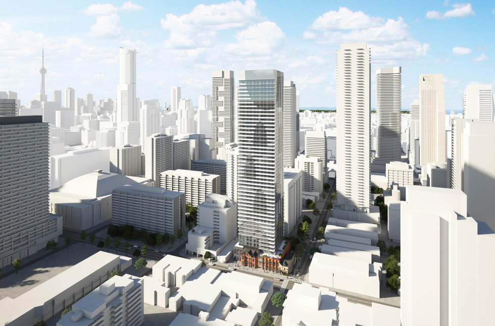 The latest application was filed by Toronto-based Graywood Developments in mid October and proposed the delivery of 574 residential units, nearly 50,000 sq. ft of retail, and "community space for queer supportive programming" to cater to the neighbourhood's predominately queer community. If approved, it would have spanned from 506 to 516 Church Street, replacing the iconic Crews & Tangos gay bar, to be restored upon completion.