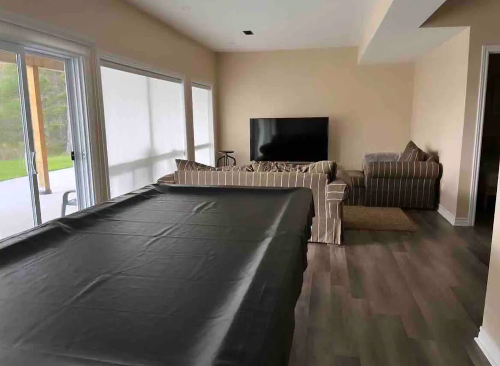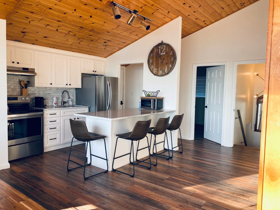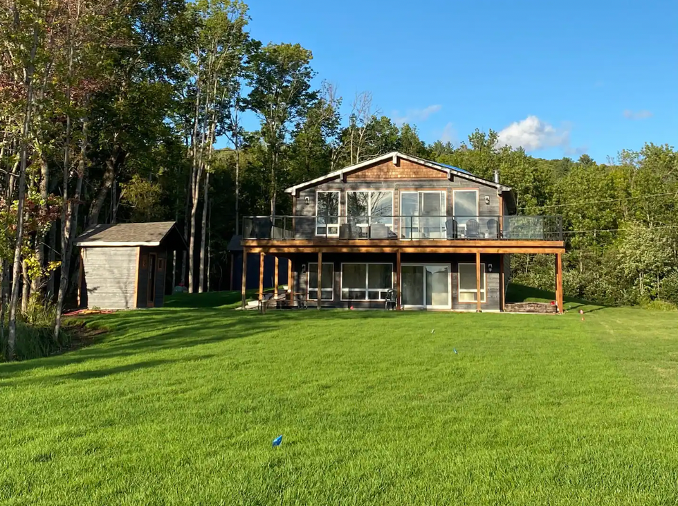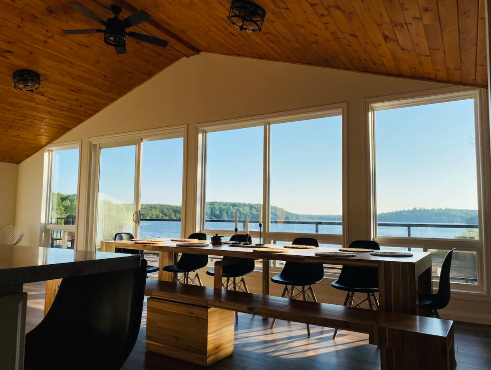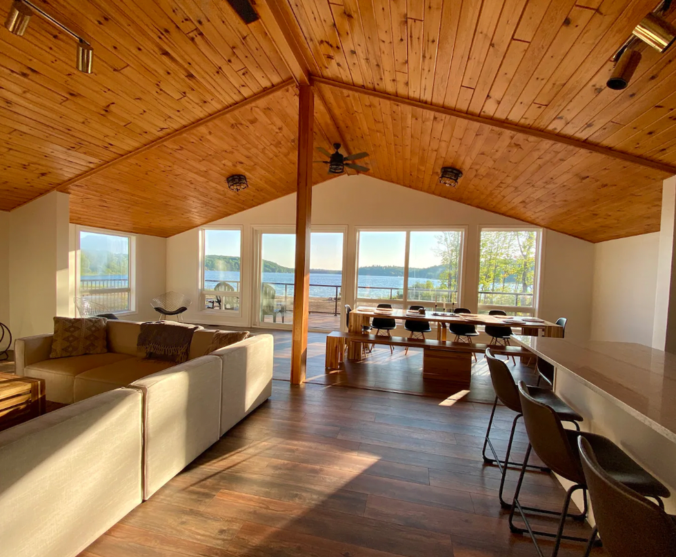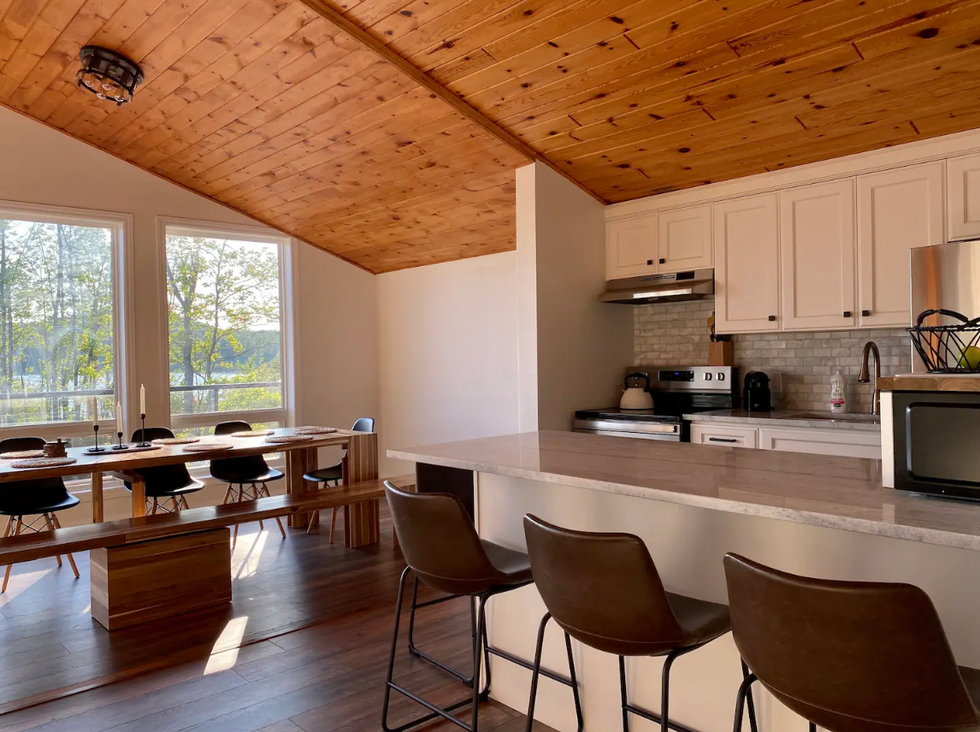 It’s a standard cottage rental, providing up to eight guests with access to a BBQ, a firepit, and non-motorized watercrafts like kayaks and canoes. With a “newly renovated” interior, it’s polished and clean, but it doesn’t boast any premium amenities one would come to expect given the rental’s $750-a-night price tag (plus a $250 cleaning fee), such as a sauna, hot tub, or motorboat. And that’s the off season price, as the rental is currently booked up until September.