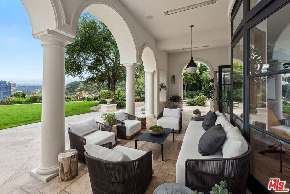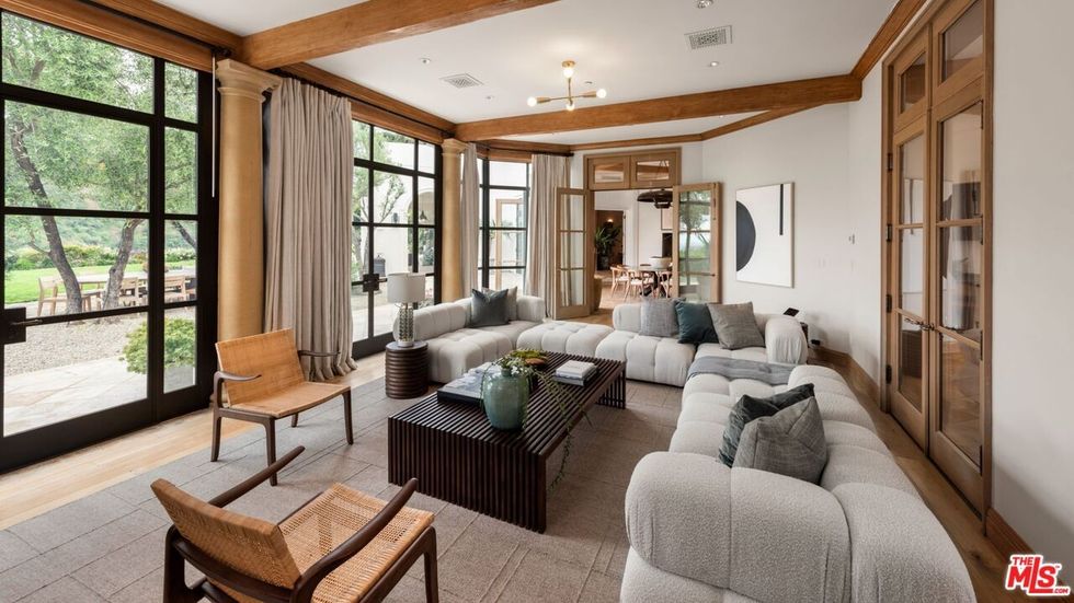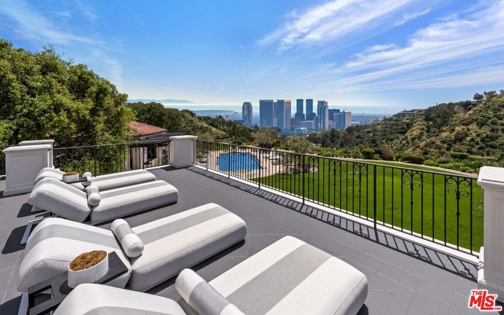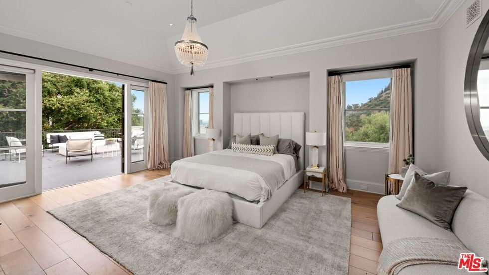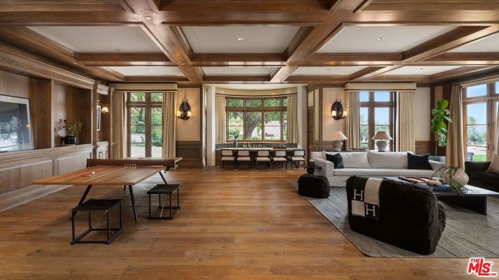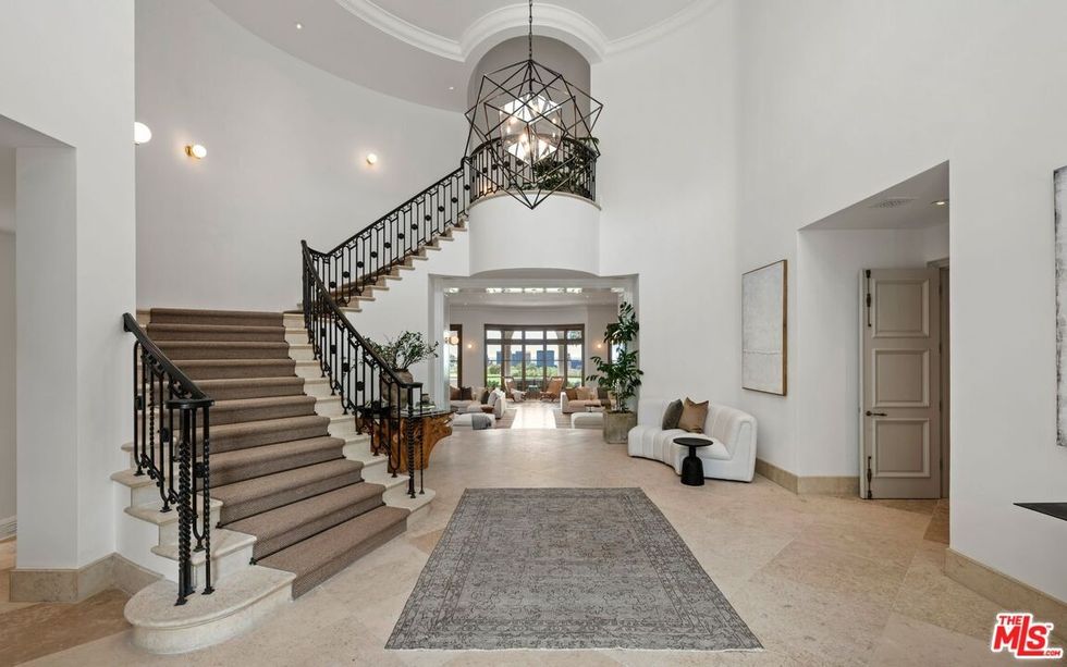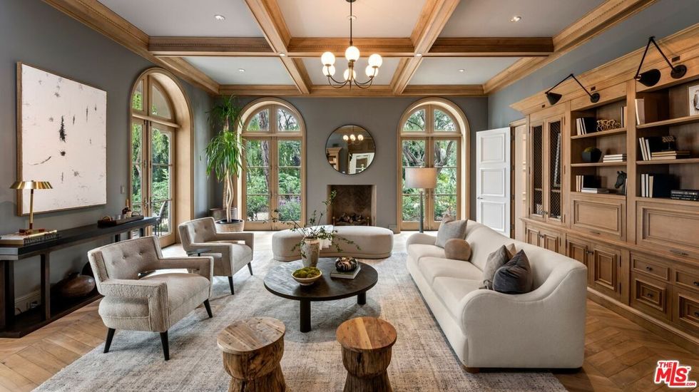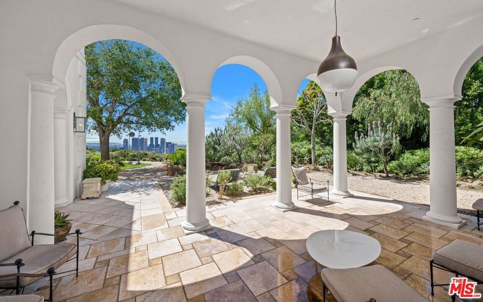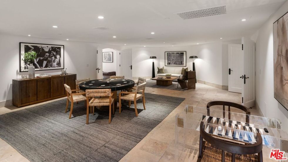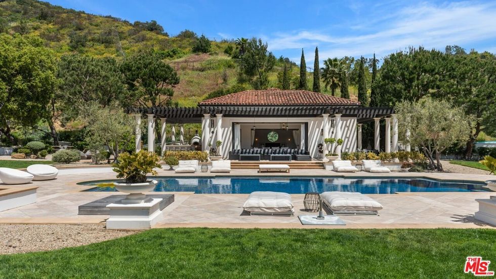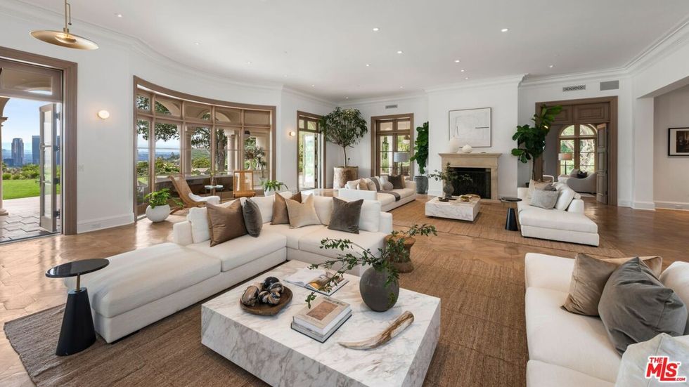 Tucked into the lush rolling hills of Benedict Canyon, the sprawling Tuscan-style home sits on a 19.7-acre plot of land, at the end of a peaceful cul-de-sac. The 10-bedroom, 22(!)-bathroom property is 24,260 sq. ft and soaked in natural light that highlights its arched ceilings, rare marble, and beautiful hardwood flooring.