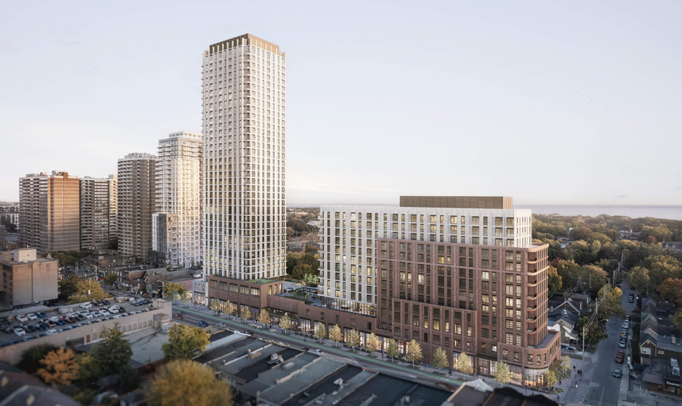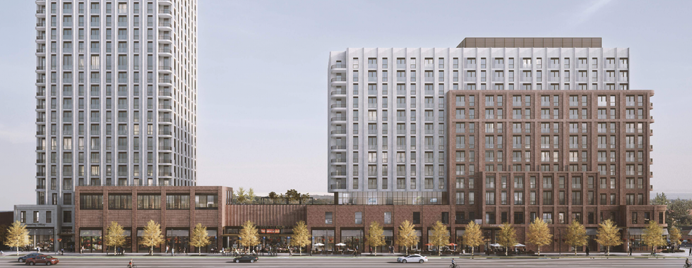 A two-tower mixed-use development has been proposed for East Danforth that would deliver 620 dwelling units and 34,412 sq. ft of commercial space within walking distance of higher-order transit options.