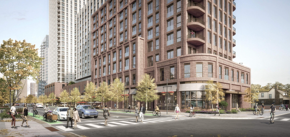 In the past, the area was defined by one- to two-storey "main street" type buildings, but over time it has become a higher-density node largely due to its proximity to higher-order transit options. The development would now be at home amongst its neighbouring buildings, which include mid- and high-rise developments reaching up to 59 storeys.