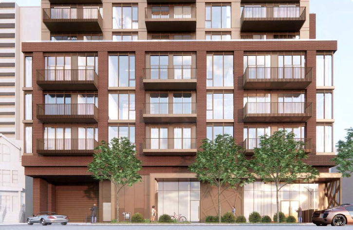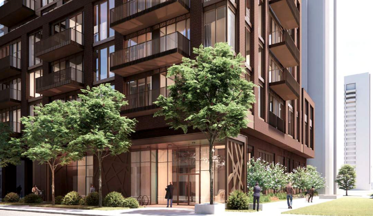Designed by Turner Fleischer Architects, the renderings reveal a sleek yet rustic, copper-toned look that is distinct from other glassy, blue monotone highrises. The brick structure is set to feature large floor-to-ceiling windows, personal balconies, and a shared outdoor terrace.