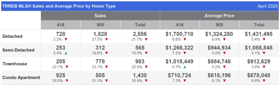 In a press release, TRREB said that last month's sales “followed the regular seasonal trend with an increase relative to March,” but that “potential buyers continue to wait for lower borrowing costs and for certainty about the trajectory of the economy.”