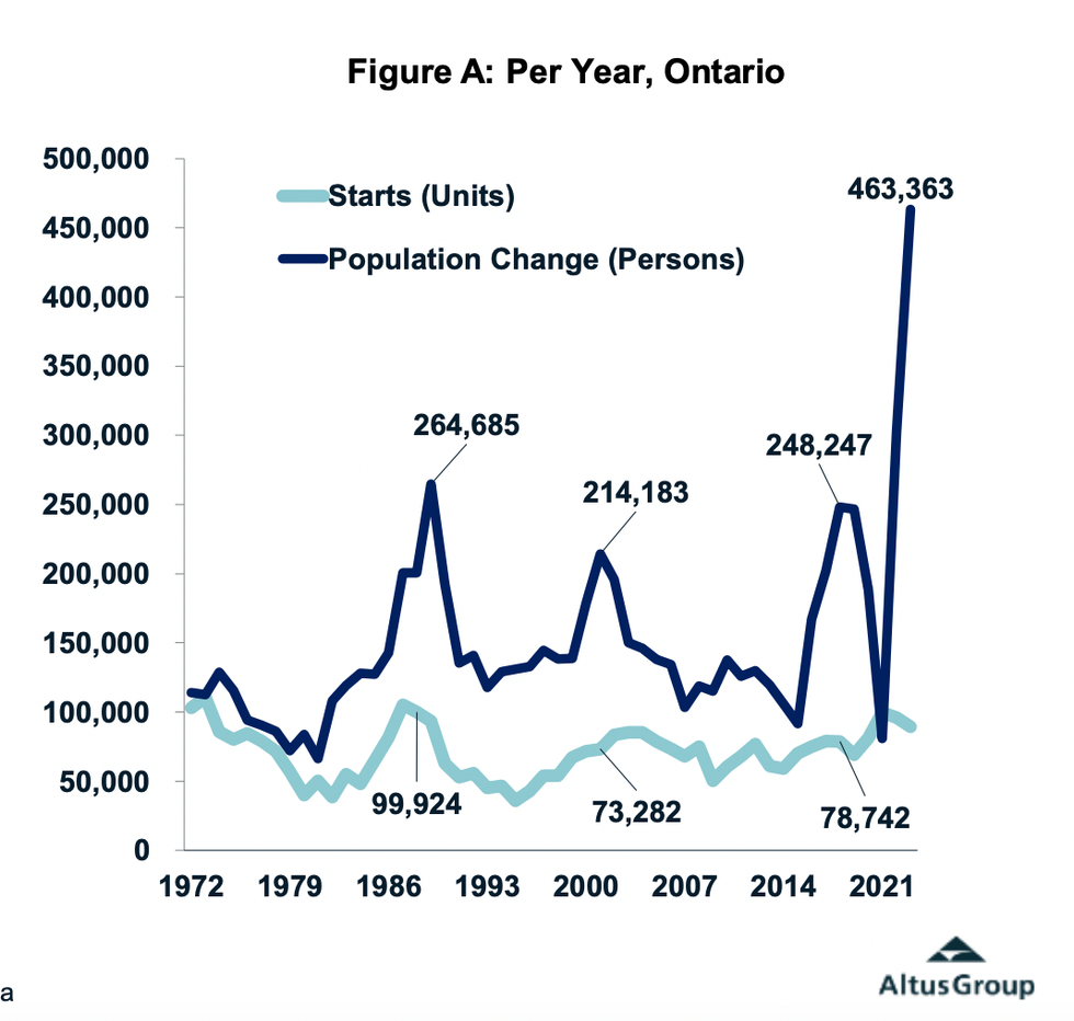 Still, while some are moving farther afield, data shows that the cohort that most drives housing demand (those aged 22-44) in the GTA has grown by an average rate of 64,000 people per year between 2019 and 2023.