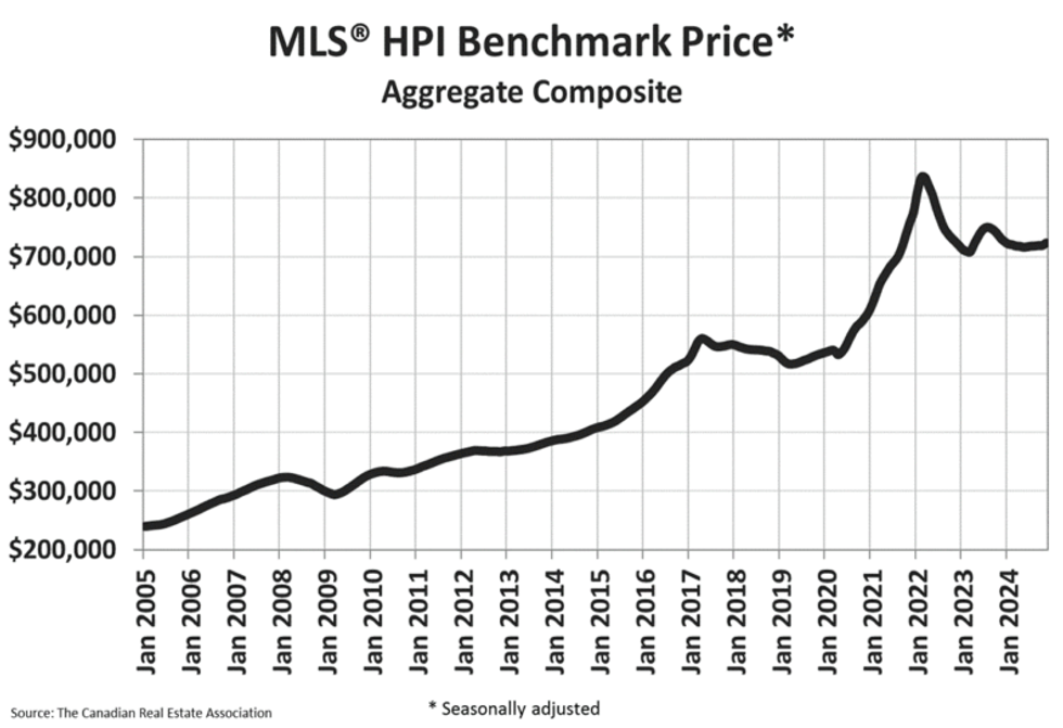 On the price side of things, the National Composite MLS® Home Price Index ticked up slightly by 0.6% between October and November to to $723,100, marking the largest month-over-month rise since July 2023 (in 16 months).