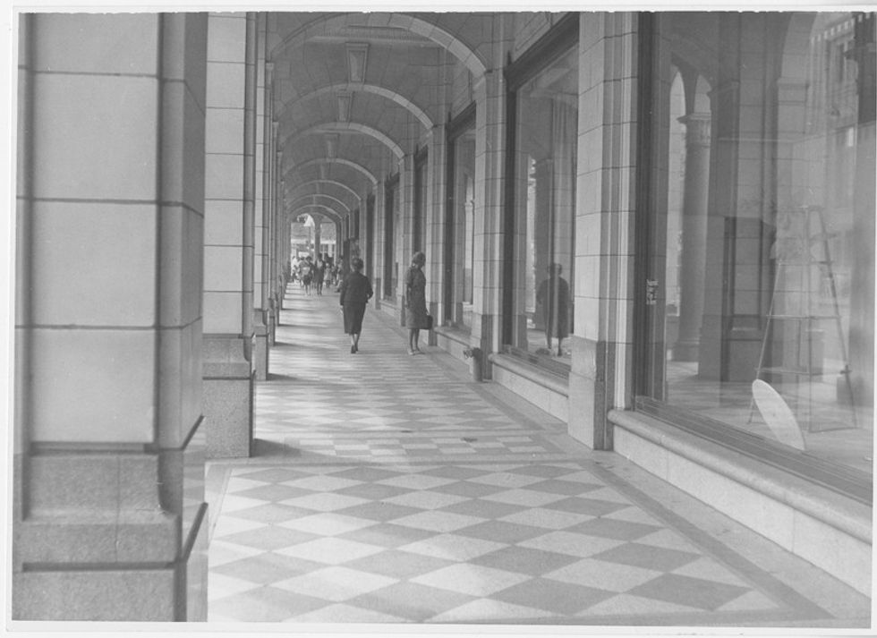 Architects Burke, Horwood and White built the six-storey structure with a terra-cotta clad facade. Its arcade, wrapping around the south and east sides, is one of its most treasured features. Modelled after buildings along Rue de Rivoli in Paris, it features granite columns, bronze detailing, decorative floors, and rounded arches.