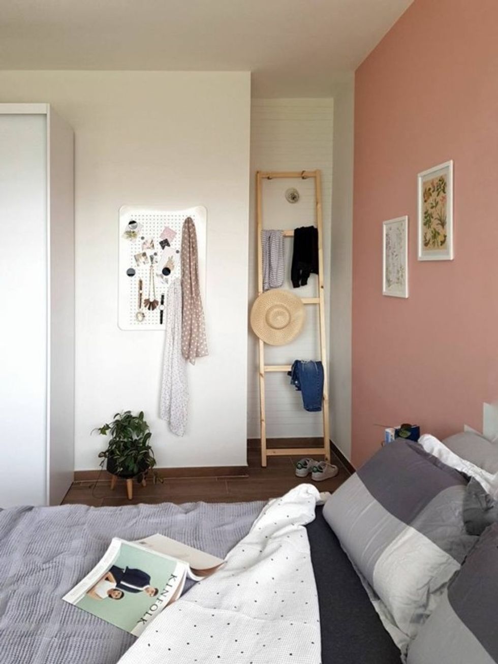 Not all furniture can fit in the small corner of a bedroom. Luckily, you can still take advantage of the space by mounting an Ivar side unit to the wall. Angling the shelving unit will give it a stylish look, and you’ll be able to hang anything you want on there from clothes to magazines.