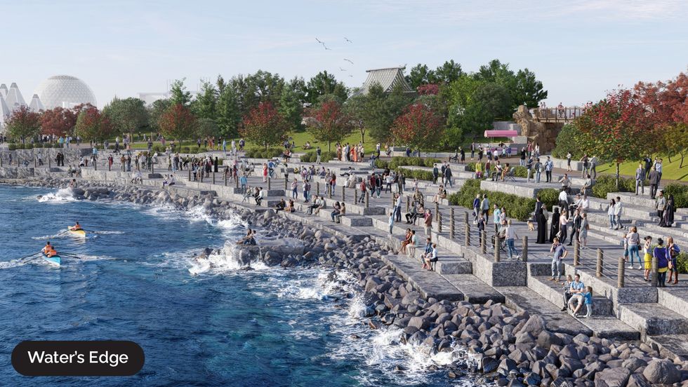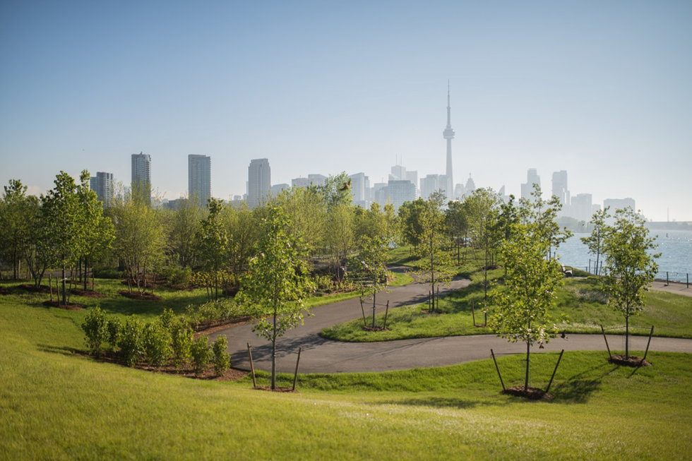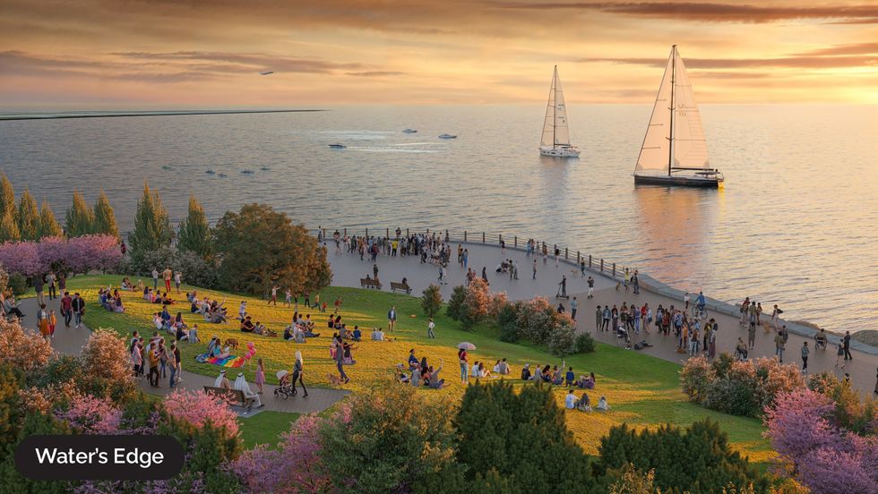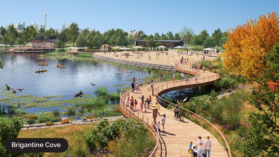 LANDinc began working on the east island designs after being selected to lead the project in February 2022, and while Hubicki says a construction timeline is still being finalized, the currently-open Trillium Park offers a taste of what's to come, with public trails, green spaces, art installations, and gathering areas already enjoyed by many.