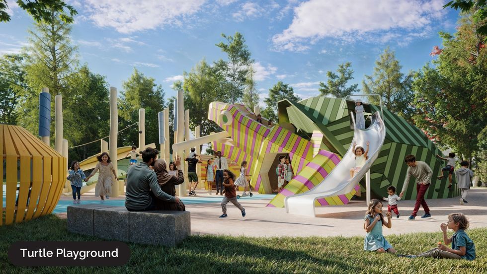 "We wanted to make it so it was very engaging, and became this iconic landmark on the site that people could see from afar," says Hubicki. "We've got a snapping turtle and a painted turtle as the two species that we're celebrating, and they've got lots of colour in them, they're going to be really fun. And there will be lots of shade trees all around so the family could can rest and relax in the shaded areas."