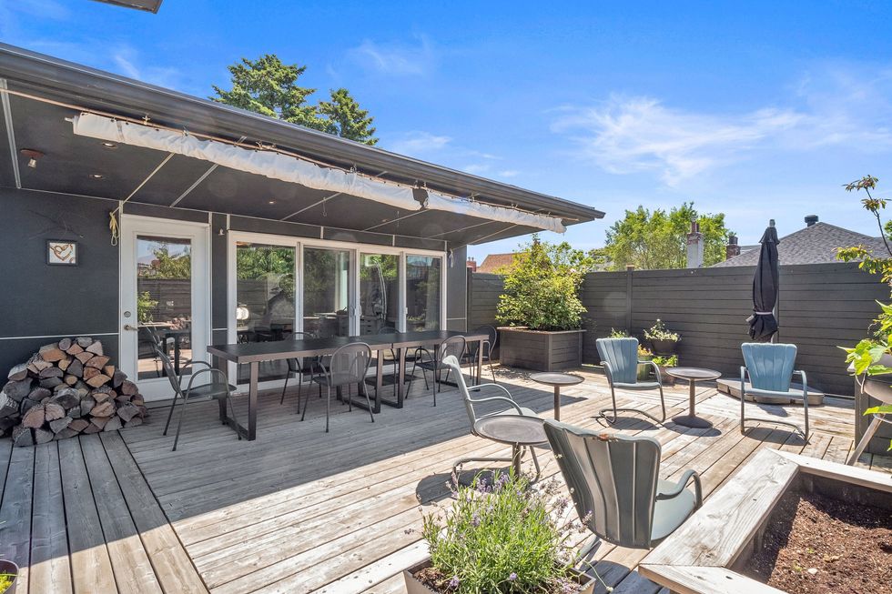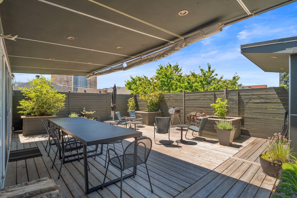 Upstairs, you're invited to bask in the tranquil atmosphere of the fenced-in 700 sq. ft deck, which extends out from the handsome live/work loft space inside. Just imagine, enjoying morning coffee under the overhang, or catching some evening rays with a glass of skin-contact wine at the end of the day.