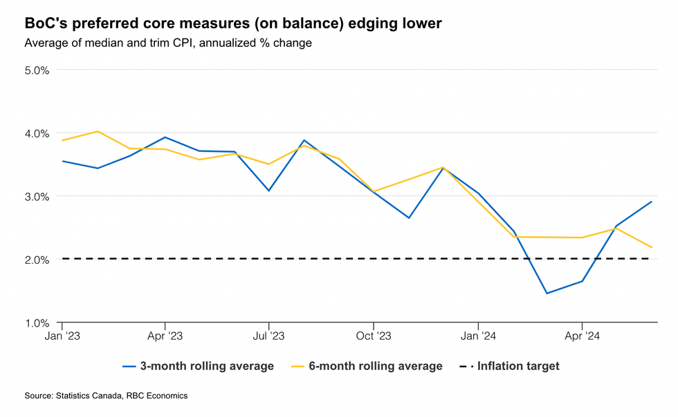The June inflation drop was largely due to a 3% decrease in gasoline prices month-over-month from May, which was enough to offset the rise in food inflation to 2.8% from 2.4% in May, according to RBC’s release.
