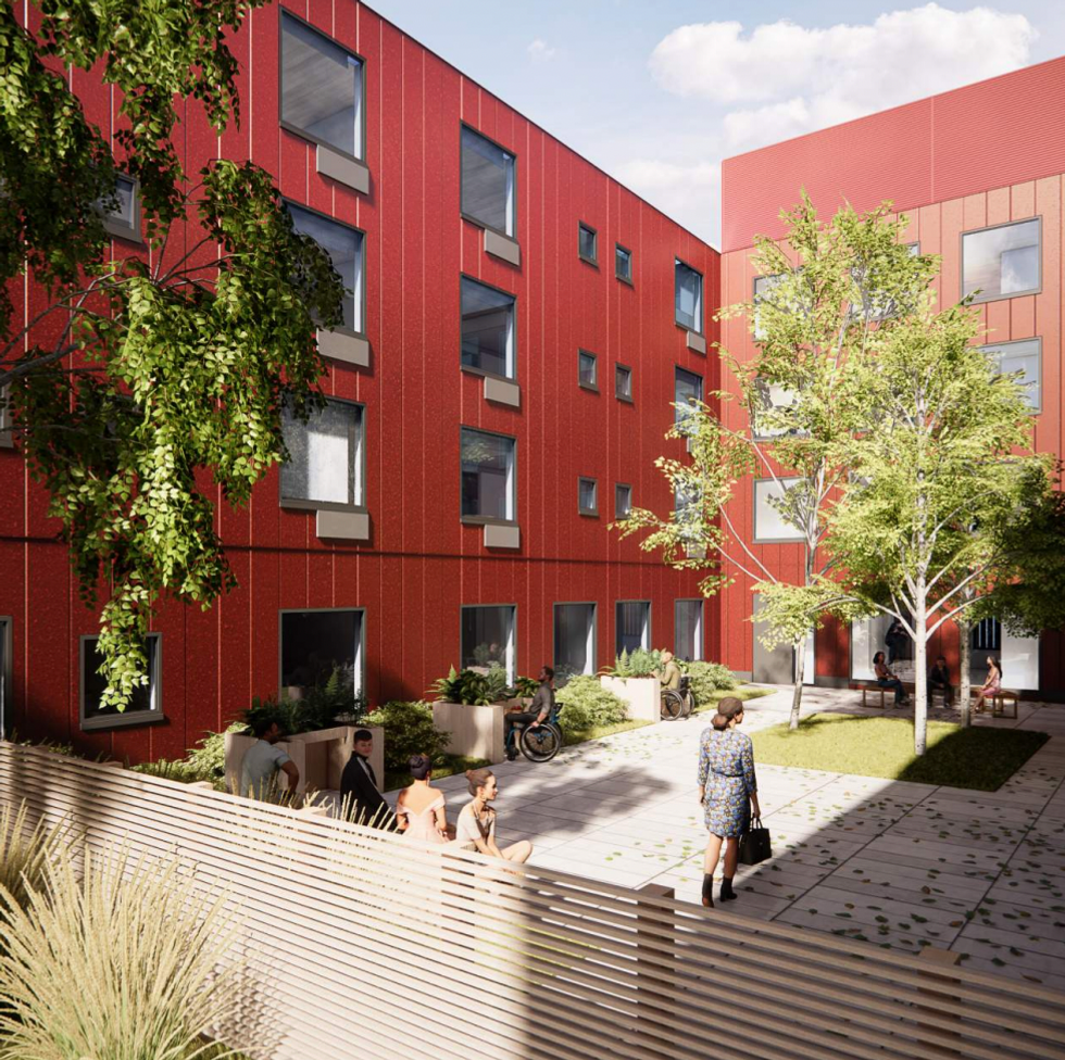 Available to future tenants will be shared laundry, a communal kitchen, and programming spaces. Plus, the private apartments will contain bathrooms and kitchens for personal use. The unit breakdown is 55 studio units, with 16 being barrier-free, and three one-bedroom units, with 4 being barrier-free.