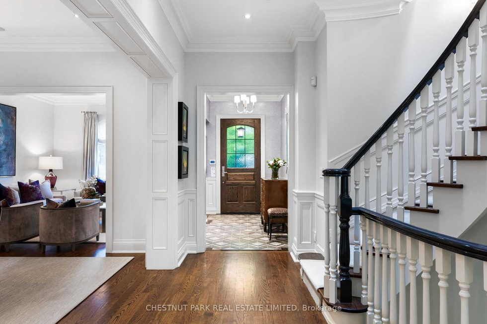 The opulent 16 Clyde Ave — located in one of Toronto’s most sought-after neighbourhoods — boasts luxurious touches both outside and in, with a resort-like, professional landscaping outside, plus 10-ft ceilings, custom designs, and a grand spiral staircase inside.