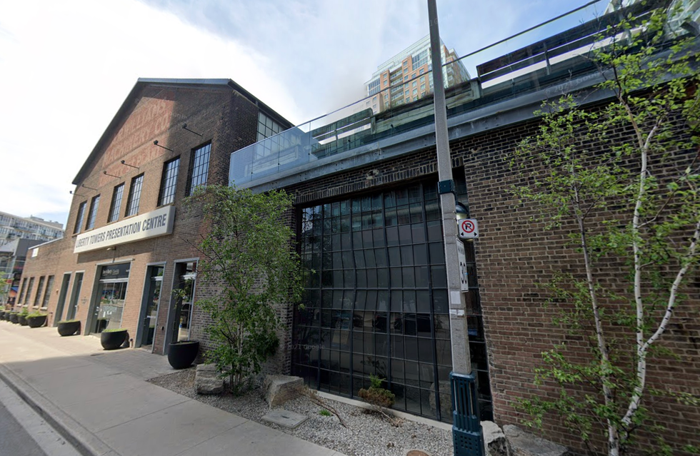 The site sits north of East Liberty Street, at the intersection of Lynn Williams Street and Western Battery Road. The space is currently occupied in part by the former A.R. Williams Machinery building at 86 Lynn Williams Street and a paid surface parking lot at 70 Lynn Williams Street. The A.R. Williams Machinery building – now known as Liberty Storage Warehouse – was built in 1929 and was most recently used as a condo sales centre. The building’s north side would be demolished and the south side would be incorporated into the base of the tower.