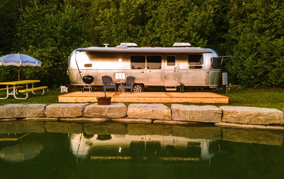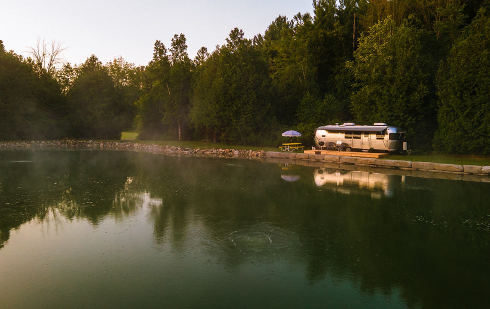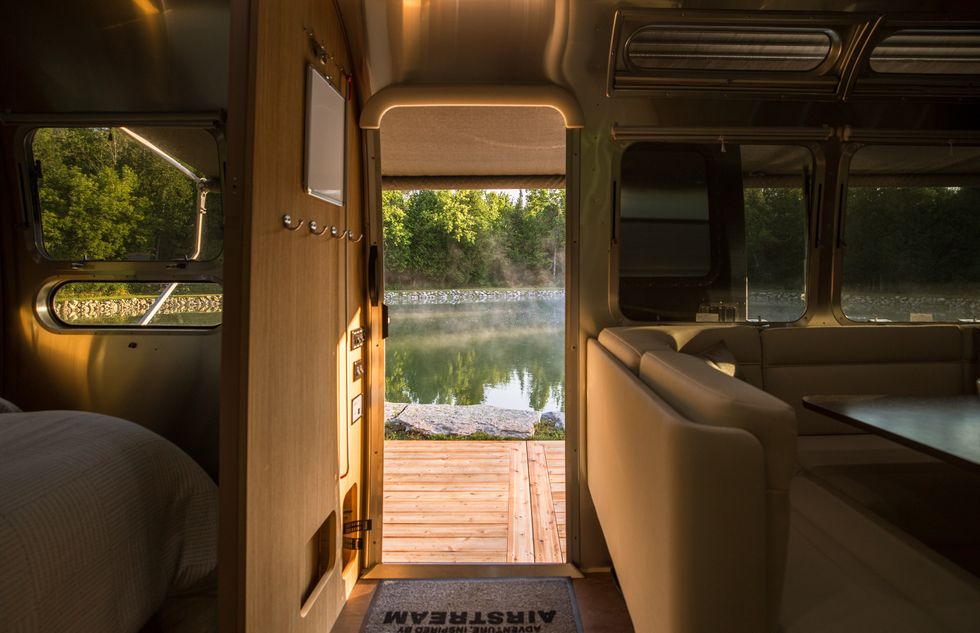 If you're wondering where you'll kick your feet up after all the hiking, biking, and swimming, you need to look no further than the brand new Airstream included in the (already competitively priced) property. The high-end camper, iconic for its sleek aluminum exterior and vintage swagger, sits at the pond's edge and provides a cushy respite to retire to while you build your dream home.